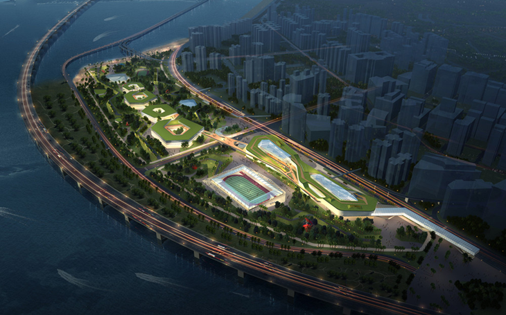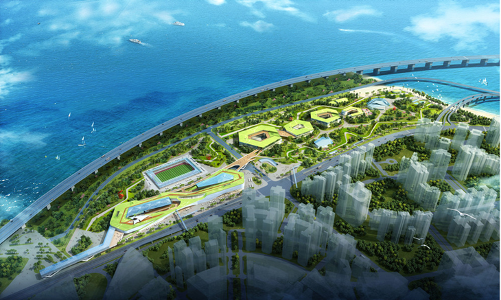取莲叶与花瓣意向,将澳门莲花文化植入整个规划当中,这个建筑似漂浮的荷花,其他场馆似散落的花瓣。取莲蓬之意,赋予建筑大自然生命,整个建筑以抽象莲蓬柱子支撑,体现澳门莲花文化。同时融入澳门文化元素,加入葡国石铺地,让人们感受到浓郁的澳门风情。核心步道的布置为人们提供了更好的运动健身场所。为快节奏城市生活提供更舒适的散步休闲空间,顺应了大时代的运动潮流,能够吸引更多的人来到运动公园;同时在功能上将商业、运动公园更好的贯通成一个整体。