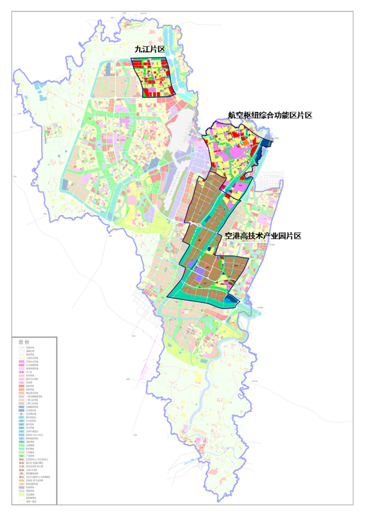 项目规模:规划范围总计约100平方公里。涉及九江片区、航空枢纽综合功能区片区以及空港高技术产业园片区。