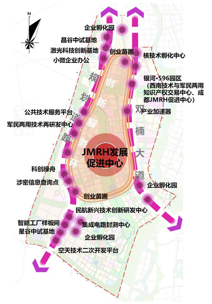 成都军民融合产业功能区是军民融合发展战略的核心承载地、成都“中优”“南拓”战略重要区域、杨柳湖综合型城市副中心,定位为军民融合发展标杆、创新转化枢纽及品质城市典范,旨在打造1处万亿级军民融合产业生态圈。