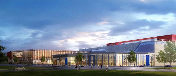 方案通过梳理汽车文化和汽车产业的本质,将充满现代感的几何形体组织在整个狭长的地块,利用架空的红色建筑构架和办公区增强动感,生态性的绿化屋面如同汽车的流线型轨迹贯穿场地各组体块。每个单体设计理念与造型手法形成一种整体呼应,突出在城市中的统一形象,强化了建筑群落的标志性,成为绝佳的汽车文化对外宣传载体。