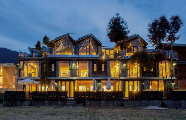 本项目为当地摩梭族民宿改造的度假客栈,当地民宿为全木结构建筑,在原基础上增加了部分现代木结构主体和钢结构平台,采用全木结构新建了祖母房(客栈接待厅),材料以当地木材为主,屋顶材料为收集的当地老黄板,最大限度还原当地摩梭族建筑特色。用本土的材料,本土的工匠,现代的技术,营造出现代与传统、时尚与民族特色的完美结合。