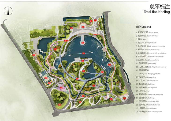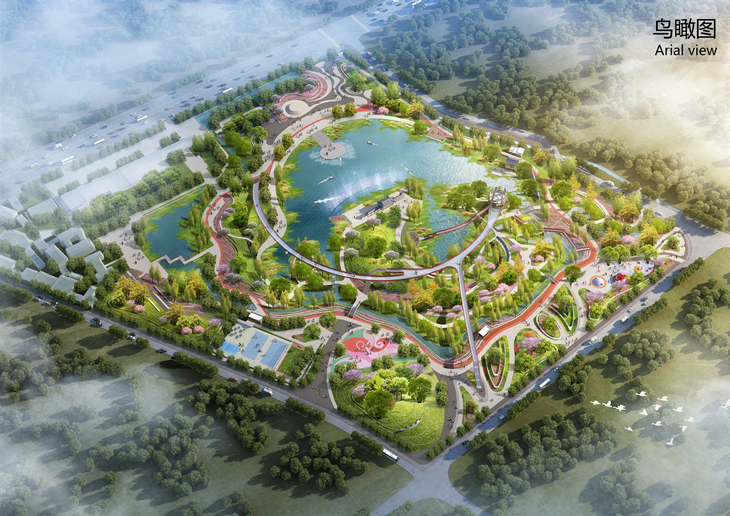 本案以彭州市市花牡丹花为创意设计元素,进行景观布局以及地面铺装线条的走向。在园区路径设计上汲取中国古典造园理念,用曲径来营造“移步异景”的散点透视空间。设计理念上以景观为媒介展现具有地域文化意义的公共空间,同时在方案主题设计上突出打造只属于彭州的 “山水画卷轴”。通过建设绿植墙、打造文化景观、增设市民活动服务配套设施等一系列改造提升措施,打造集园林、文化、休闲娱乐于一体的“综合性公园”。